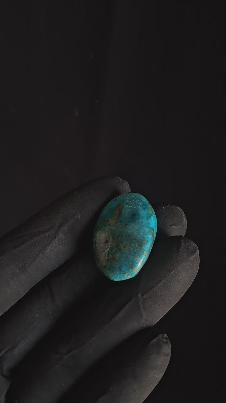 Discover the natural beauty of this 100% Natural Turquoise (Irani Firoza) cabochon, weighing 8.55 grams (42.75 carats). Known for its captivating blue-green hues, this gemstone offers an authentic and vibrant appearance that enhances any jewelry piece. Its smooth cabochon cut highlights the stone's unique texture and natural patterns, making it perfect for rings, pendants, or collection displays. Irani Firoza turquoise is treasured for its rarity and spiritual significance, believed to bring protection and positive energy to the wearer. Add a piece of timeless elegance and meaningful charm to your collection with this exquisite natural turquoise gem.